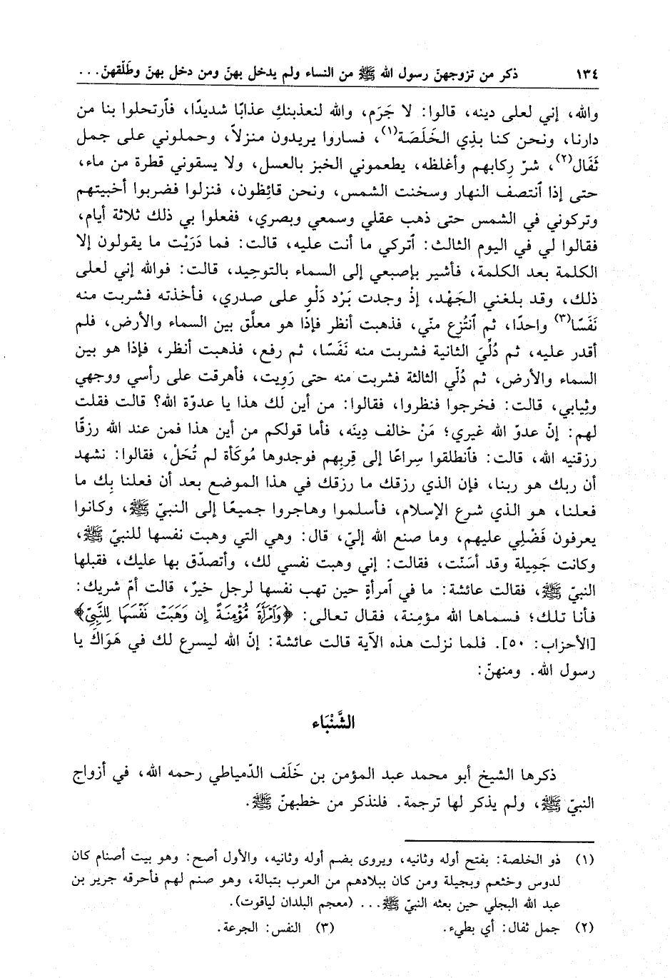 ذكرها الشيخ أبو محمد عبد المؤمن بن خلف الدمياطي رحمه الله ، في أزواج النبي ( صلى الله عليه وسلم ) ، ولم يذكر لها ترجمة . فلنذكر من خطبهن ( صلى الله عليه وسلم ) .