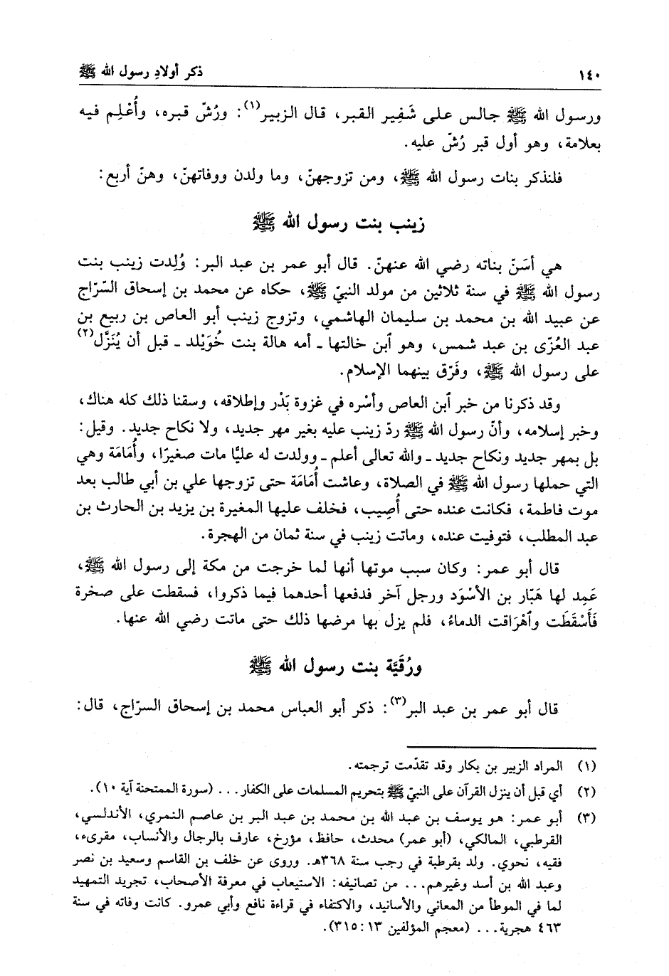 قال أبو عمر بن عبد البر : ذكر أبو العباس محمد بن إسحاق السراج ، قال