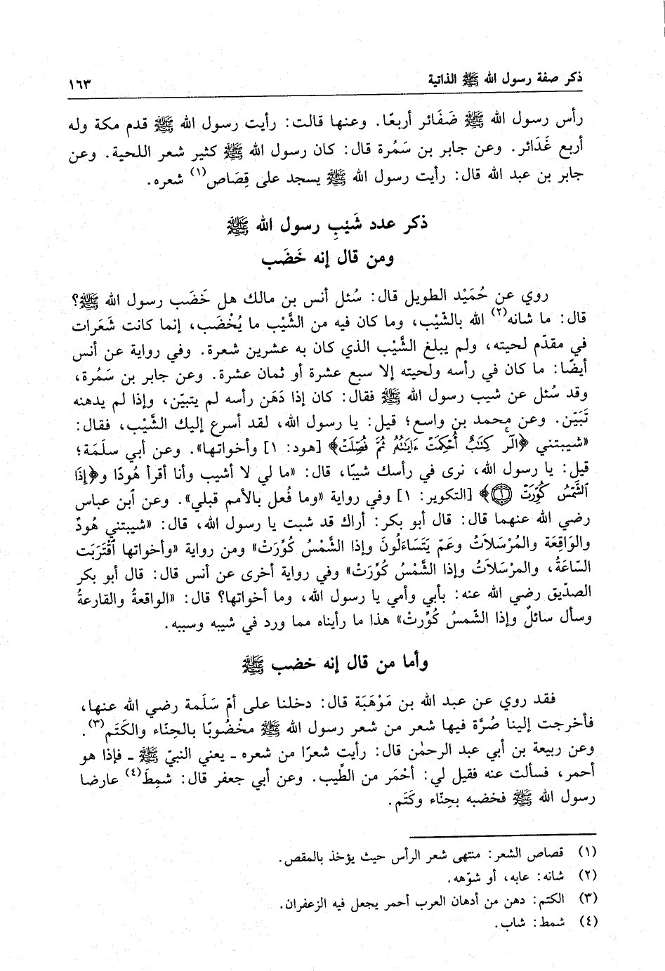 ذكر عدد شيب رسول الله ( صلى الله عليه وسلم ) ومن قال إنه خضب