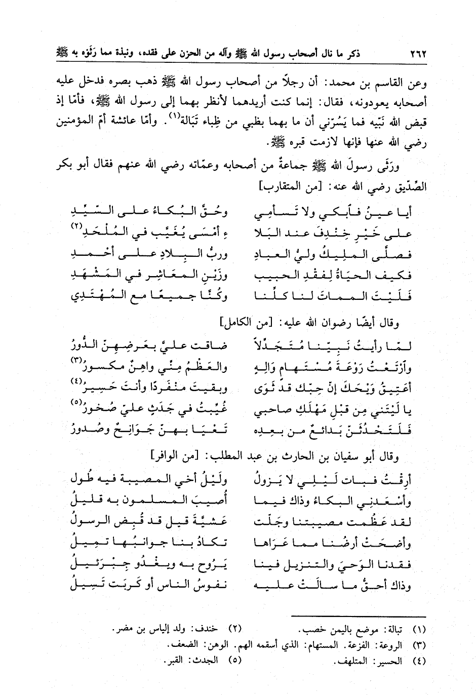 ورثى رسول الله ( صلى الله عليه وسلم ) جماعةٌ من أصحابة وعماته رضي الله عنهم فقال أبو بكر الصديق رضي الله عنه :