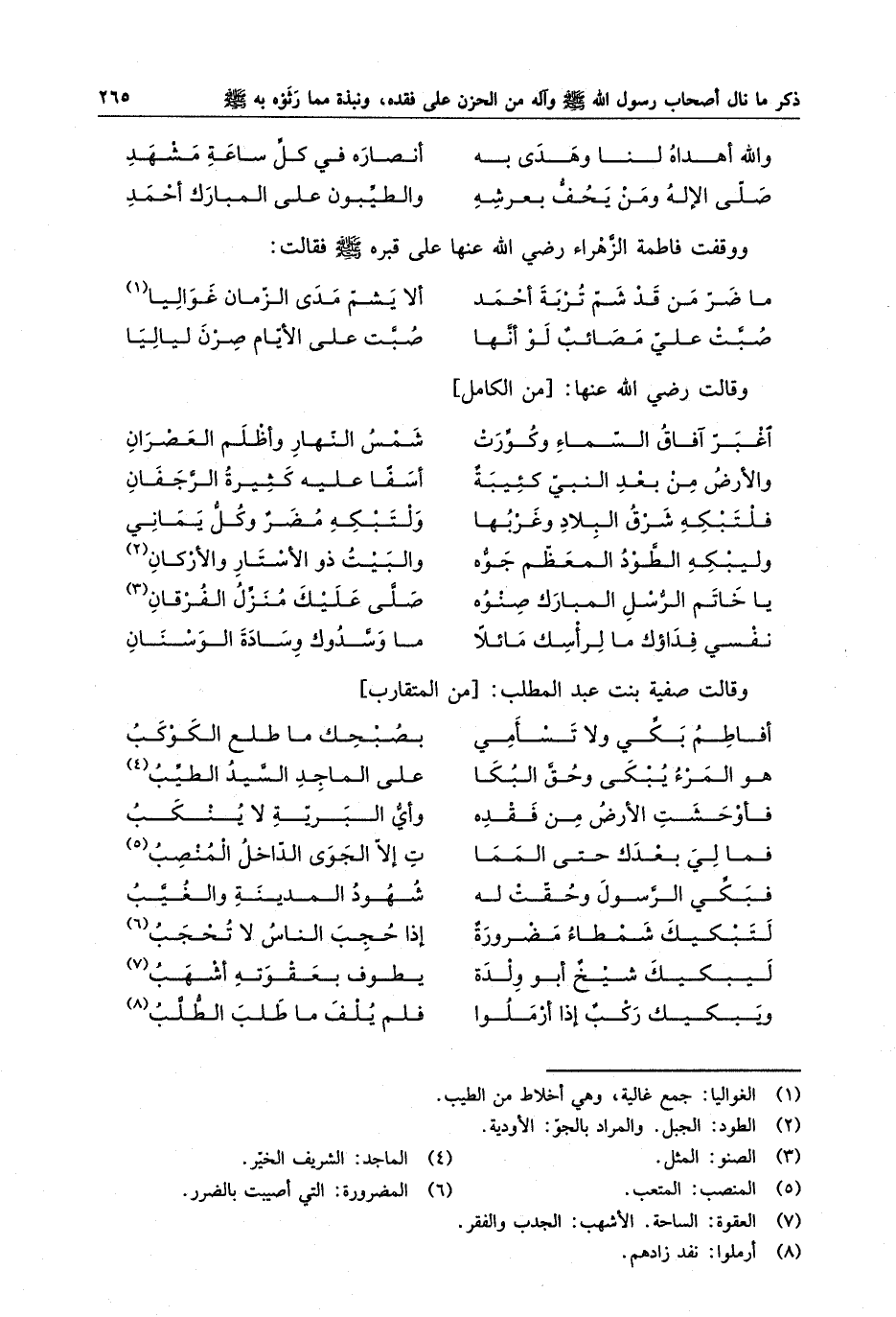 فأوحشت الأرض من فقده . . . وأي البرية لا ينكب فمالي بعدك حتى المما . . . ت إلا الجوى الداخل المنصب
