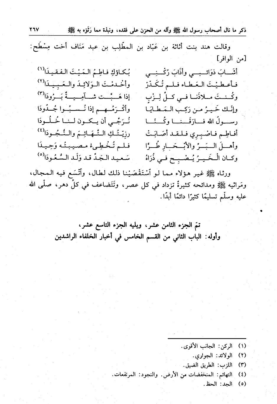 ورثاه ( صلى الله عليه وسلم ) غير هؤلاء مما لو استقصينا ذلك لطال ، واتسع فيه المجال ، ومراثيه ( صلى الله عليه وسلم ) ومدائحه كثيرةٌ تزداد في كل عصر ، وتتضاعف في كل دهر ، ( صلى الله عليه وسلم ) تسليماً كثيرا دائما أبدا .