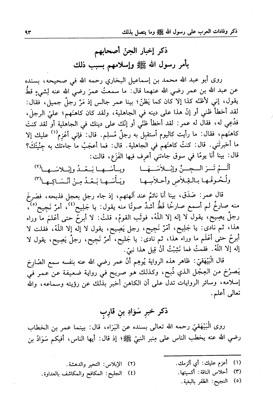 قال البيهقيّ : ظاهر هذه الرواية يوهم أن عمر رضي الله عنه بنفسه سمع الصارخ يصرخ من العجل الذي ذبح ، وكذلك هو صريح في رواية ضعيفة عن عمر في إسلامه ، وسائر الروايات تدل على أن الكاهن أخبر بذلك عن رؤيته وسماعه ، والله تعالى أعلم .
