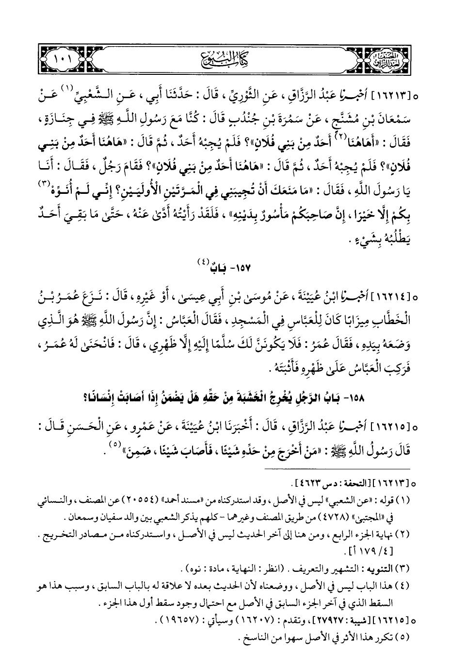 (¬٢) نهاية الجزء الرابع، ومن هنا إلى آخر الحديث ليس في الأصل، واستدركناه من مصادر التخريج. [٤/ ١٧٩ أ].