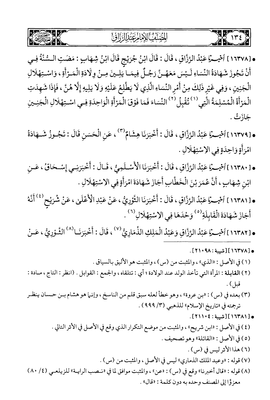 • [١٦٣٨٢] أخبرنا عَبْدُ الرَّزَّاقِ وَعَبْدُ الْمَلِكِ الذِّمَارِيُّ (¬٧)، قَالَ: أَخْبَرَنَا (¬٨) الثَّوْريُّ، عَنْ