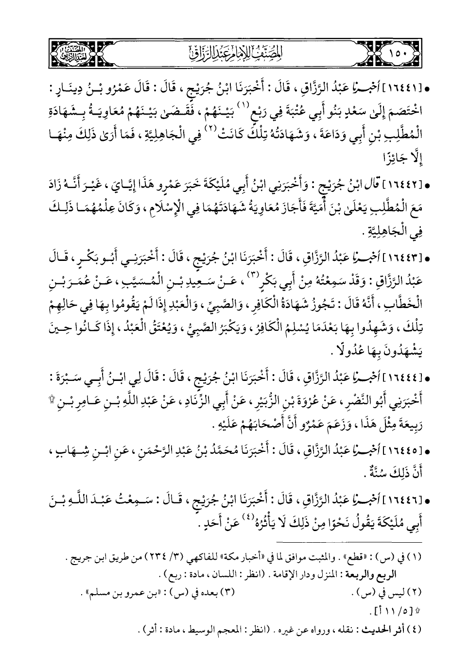 • [١٦٤٤٦] أخبرنا عَبْدُ الرَّزاقِ، قَالَ: أَخْبَرَنَا ابْنُ جُرَيْجٍ، قَالَ: سَمِعْتُ عَبْدَ اللَّهِ بْنَ أَبِي مُلَيْكَةَ يَقُولُ نَحْوًا مِنْ ذَلِكَ لَا يَأْثُرُهُ (¬٤) عَنْ أَحَدٍ.