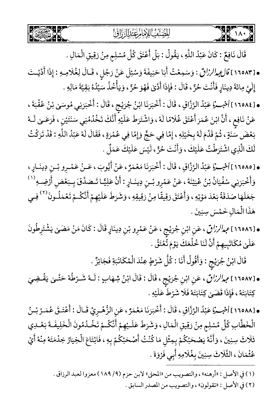 (¬١) في الأصل: "أرهنه"، والتصويب من "المحلى" لابن حزم (٩/ ١٨٩) معزوا لعبد الرزاق.