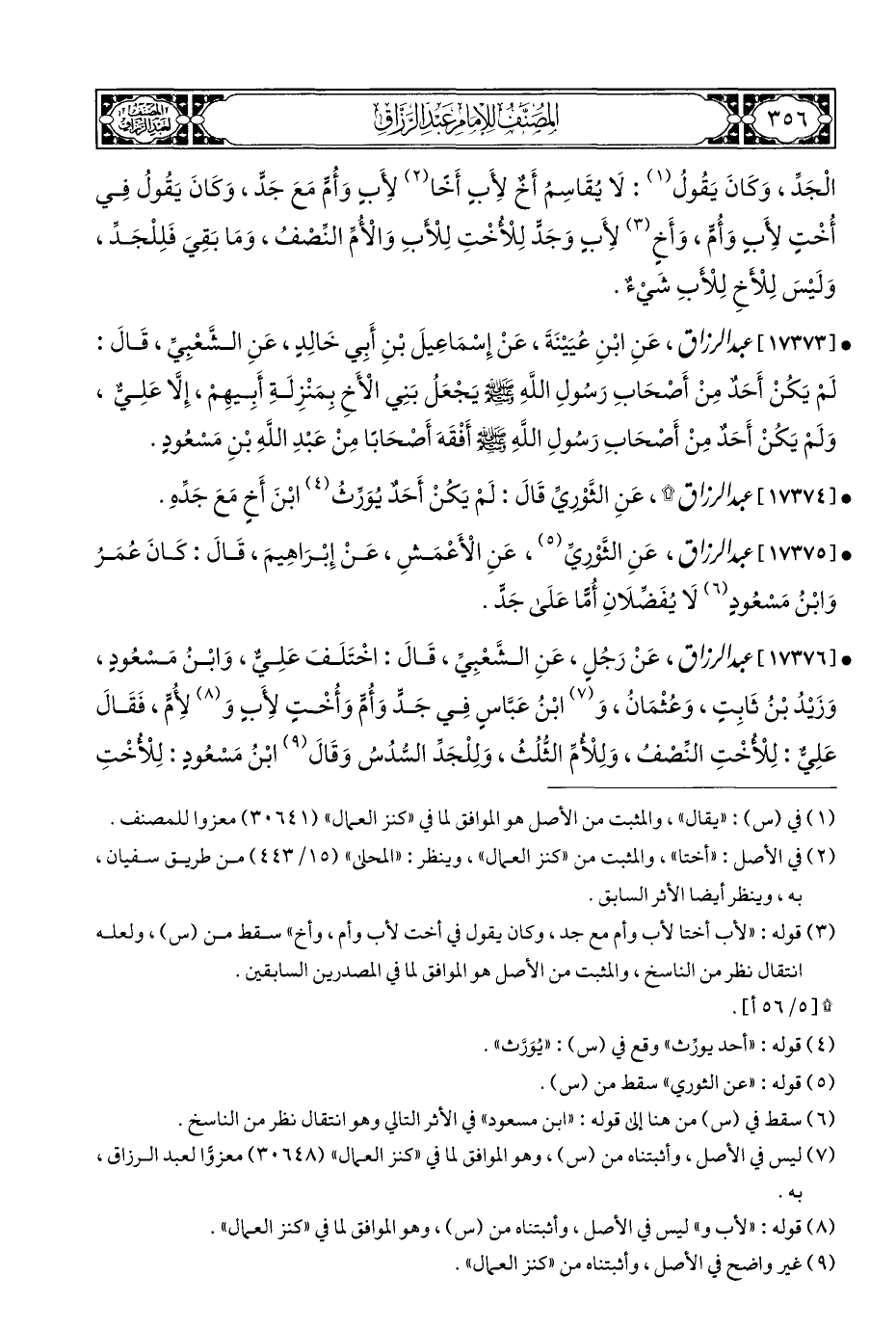 • [١٧٣٧٦] عبد الرزاق، عَنْ رَجُلٍ، عَنِ الشَّعْبِيِّ، قَالَ: اخْتَلَفَ عَلِيٌّ، وَابْنُ مَسْعُودٍ، وَزَيْدُ بْنُ ثَابِتٍ، وَعُثْمَان، وَ (¬٧) ابْنُ عَبَّاسٍ فِي جَدٍّ وَأُمِّ وَأُخْتٍ لِأَبٍ وَ (¬٨) لِأُمٍّ، فَقَالَ عَلِيٌّ: لِلْأُخْتِ النِّصْف، وَلِلأمِّ الثُّلُث، وَلِلْجَدِّ السُّدُسُ وَقَالَ (¬٩) ابْنُ مَسْعُودٍ: لِلْأُخْتِ