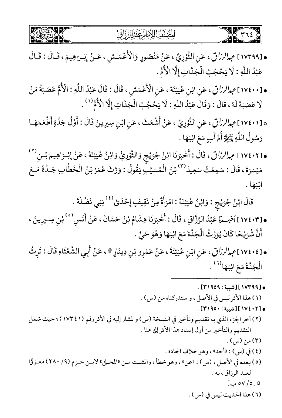 (¬٥) بعده في الأصل، (س): "عن"، وهو خطأ، والمثبت من "المحلى" لابن حزم (٩/ ٢٨٠) معزوًّا لعبد الرزاق، به.
