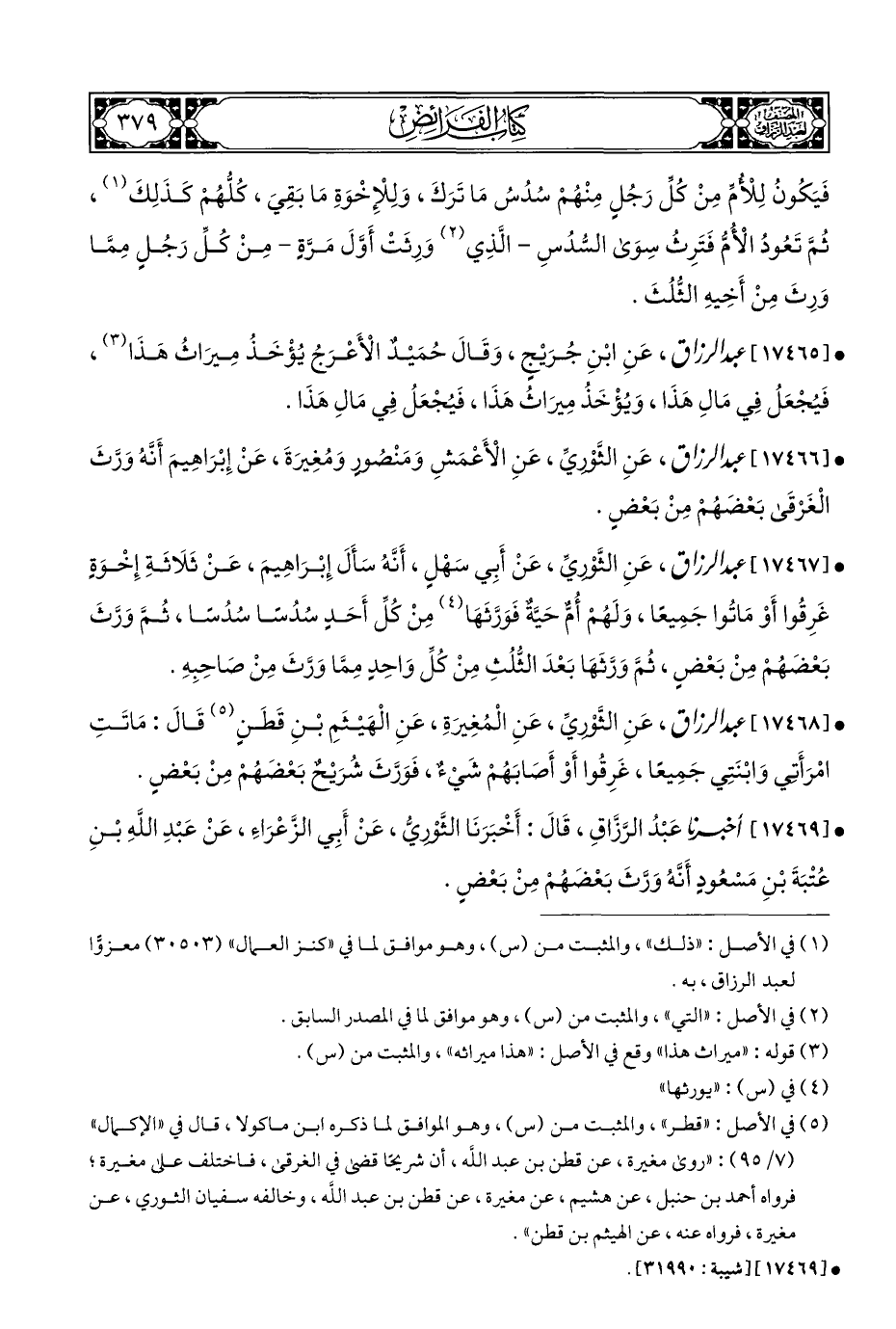• [١٧٤٦٩] عَبْدُ الرَّزَّاقِ، قَالَ: أَخْبَرَنَا الثَّوْرِيُّ، عَنْ أَبِي الزَّعْرَاءِ، عَنْ عَبْدِ اللَّهِ بْنِ عُتْبَةَ بْنِ مَسْعُودٍ أَنَّهُ وَرَّثَ بَعْضَهُمْ مِنْ بَعْضٍ.