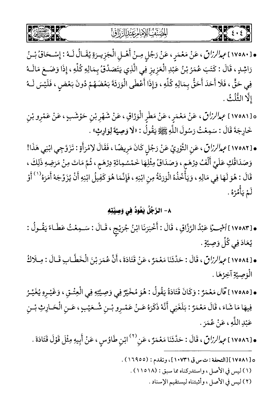 كتاب مصنف عبد الرزاق - ط التأصيل الثانية (اسم الجزء: 8)