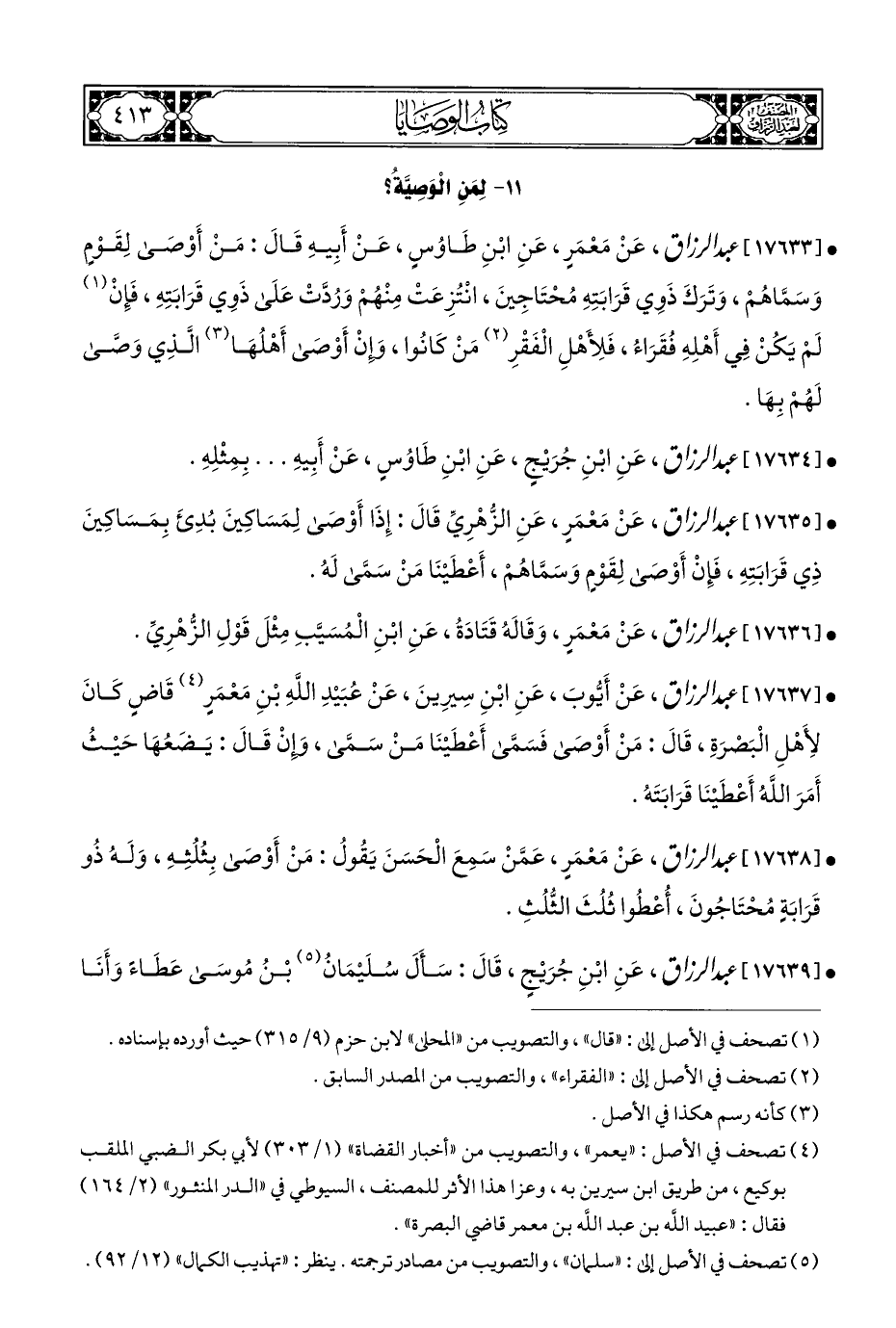 • [١٧٦٣٧] عبد الرزاق، عَنْ أَيُّوبَ، عَنِ ابْنِ سِيرِينَ، عَنْ عُبَيْدِ اللهِ بْنِ مَعْمَرٍ (¬٤) قَاضٍ كَانَ لِأَهْلِ الْبَصرَةِ، قَالَ: مَنْ أَوْصَى فَسَمَّى أَعْطَيْنَا مَنْ سَمَّى، وَإِنْ قَالَ: يَضَعُهَا حَيْثُ أَمَرَ اللهُ أَعْطَيْنَا قَرَابَتَهُ.