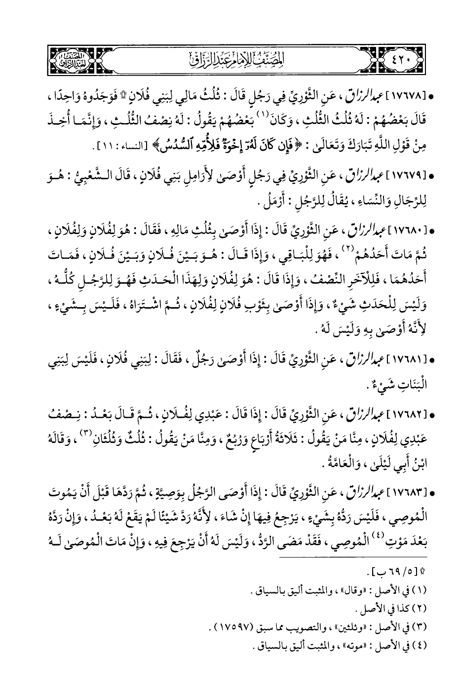 • [١٧٦٨٢] عبد الرزاق، عَنِ الثَّوْرِيِّ قَالَ: إِذَا قَالَ: عَبْدِي لِفُلَانٍ، ثُمَّ قَالَ بَعْدُ: نِصْفُ عَبْدِي لِفُلَانٍ، مِنَّا مَنْ يَقُولُ: ثَلَاثَةُ أَرْبَاعٍ وَرُبُعٌ، وَمِنَّا مَنْ يَقُولُ: ثُلُثٌ وَثُلُثَانِ (¬٣)، وَقَالَهُ ابْنُ أَبِي لَيْلَى، وَالْعَامَّةُ.