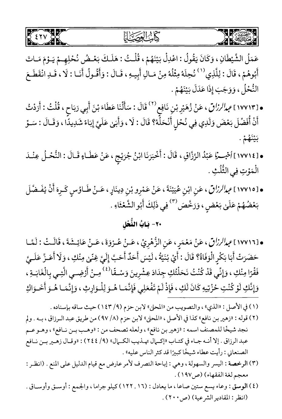 • [١٧٧١٤] أخبرنا عَبْدُ الرَّزَّاقِ، قَالَ: أَخْبَرَنَا ابْنُ جُرَيْجٍ، عَنْ عَطَاءٍ قَالَ: النُّحْلُ عِنْدَ الْمَوْتِ فِي الثُّلُثِ.