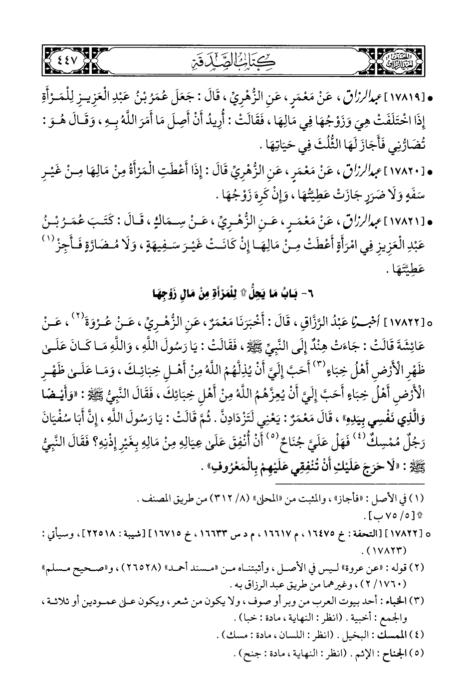 ٦ - بَابُ مَا يَحِلُّ * لِلْمَرْأَةِ مِنْ مَالِ زَوْجِهَا