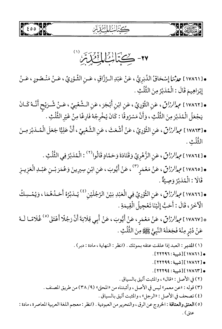 • [١٧٨٦٤] عبد الرزاق، عَنِ الزُّهْرِيِّ وَقَتَادَةَ وَحَمَّادٍ قَالُوا (¬٢): الْمُدَبَّرُ فِي الثُّلُثِ.