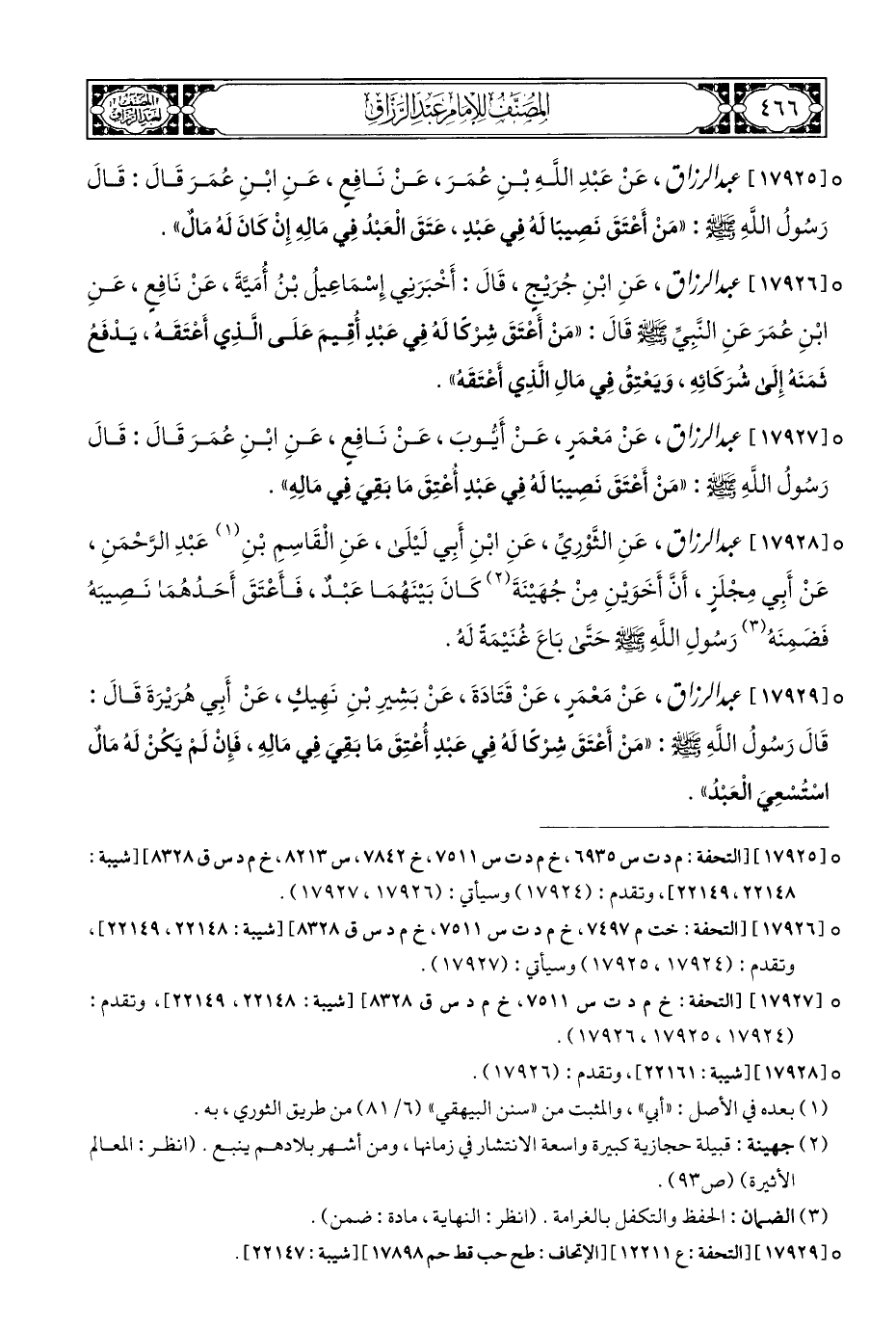 ° [١٧٩٢٨] عبد الرزاق، عَنِ الثَّوْرِيِّ، عَنِ ابْنِ أَبِي لَيْلَى، عَنِ الْقَاسِمِ بْنِ (¬١) عَبْدِ الرَّحْمَنِ، عَنْ أَبِي مِجْلَزٍ، أَنَّ أَخَوَيْنِ مِنْ جُهَيْنَةَ (¬٢) كَانَ بَيْنَهُمَا عَبْدٌ، فَأَعْتَقَ أَحَدُهُما نَصِيبَهُ فَضَمِنَهُ (¬٣) رَسُولِ الله - صلى الله عليه وسلم - حَتَّى بَاعَ غُنَيْمَةَ لَهُ.