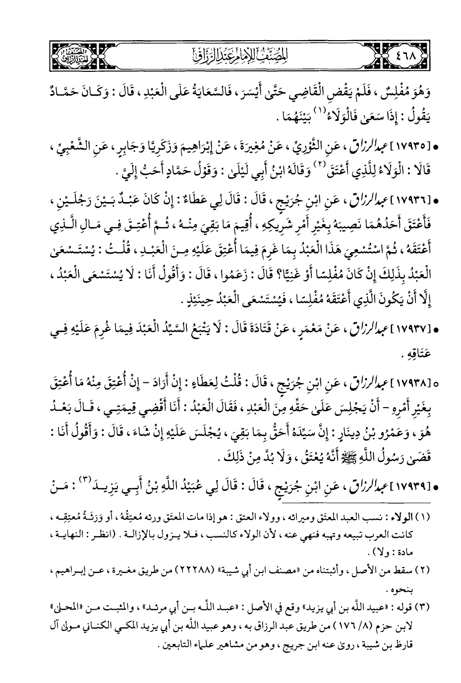 (¬٣) قوله: "عبيد الله بن أبي يزيد" وقع في الأصل: "عبد الله بن أبي مرثد"، والمثبت من "المحلى" لابن حزم (٨/ ١٧٦) من طريق عبد الرزاق به، وهو عبيد الله بن أبي يزيد المكي الكناني مولى آل قارظ بن شيبة، روى عنه ابن جريج، وهو من مشاهير علماء التابعين.