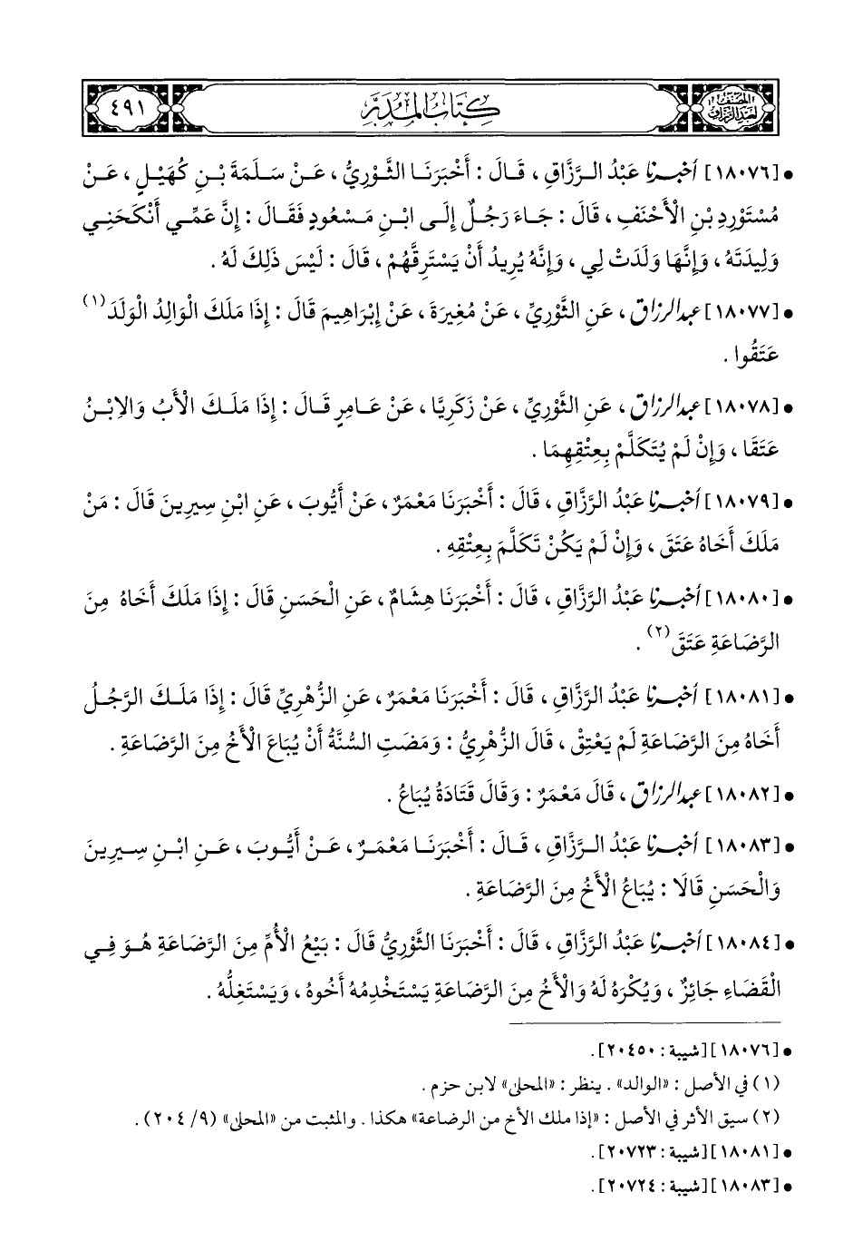 • [١٨٠٧٩] أخبرنا عَبْدُ الرَّزَّاقِ، قَالَ: أَخْبَرَنَا مَعْمَرٌ، عَنْ أَيُّوبَ، عَنِ ابْنِ سِيرِينَ قَالَ: مَنْ مَلَكَ أَخَاهُ عَتَقَ، وإِنْ لَمْ يَكُنْ تَكَلَّمَ بِعِتْقِهِ.