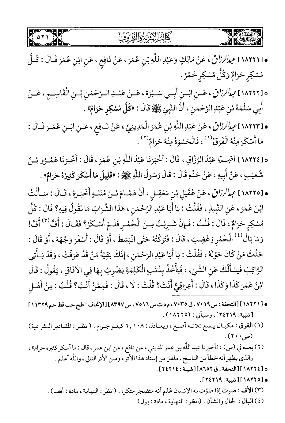 • [١٨٢٢٣] عبد الرزاق، عَنْ عَبْدِ اللَّهِ بْنِ عُمَرَ الْمَدِينِيِّ، عَنْ نَافِعٍ، عَنِ ابْنِ عُمَرَ قَالَ: مَا أَسْكَرَ مِنْهُ الْفَرَقُ (¬١)، فَالْحَسْوَةُ مِنْهُ حَرَامٌ (¬٢).