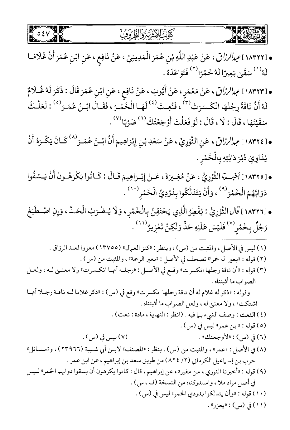 • [١٨٣٢٢] عَبْدُ الرَّزَّاقِ، عَنْ عَبْدِ اللَّهِ بْنِ عُمَرَ الْمَدِينِيِّ، عَنْ نَافِعٍ، عَنِ ابْنِ عُمَرَ أَنَّ غُلَامًا لَهُ (¬١) سَقَى بَعِيرًا لَهُ خَمْرًا (¬٢) فَتَوَاعَدَهُ.
