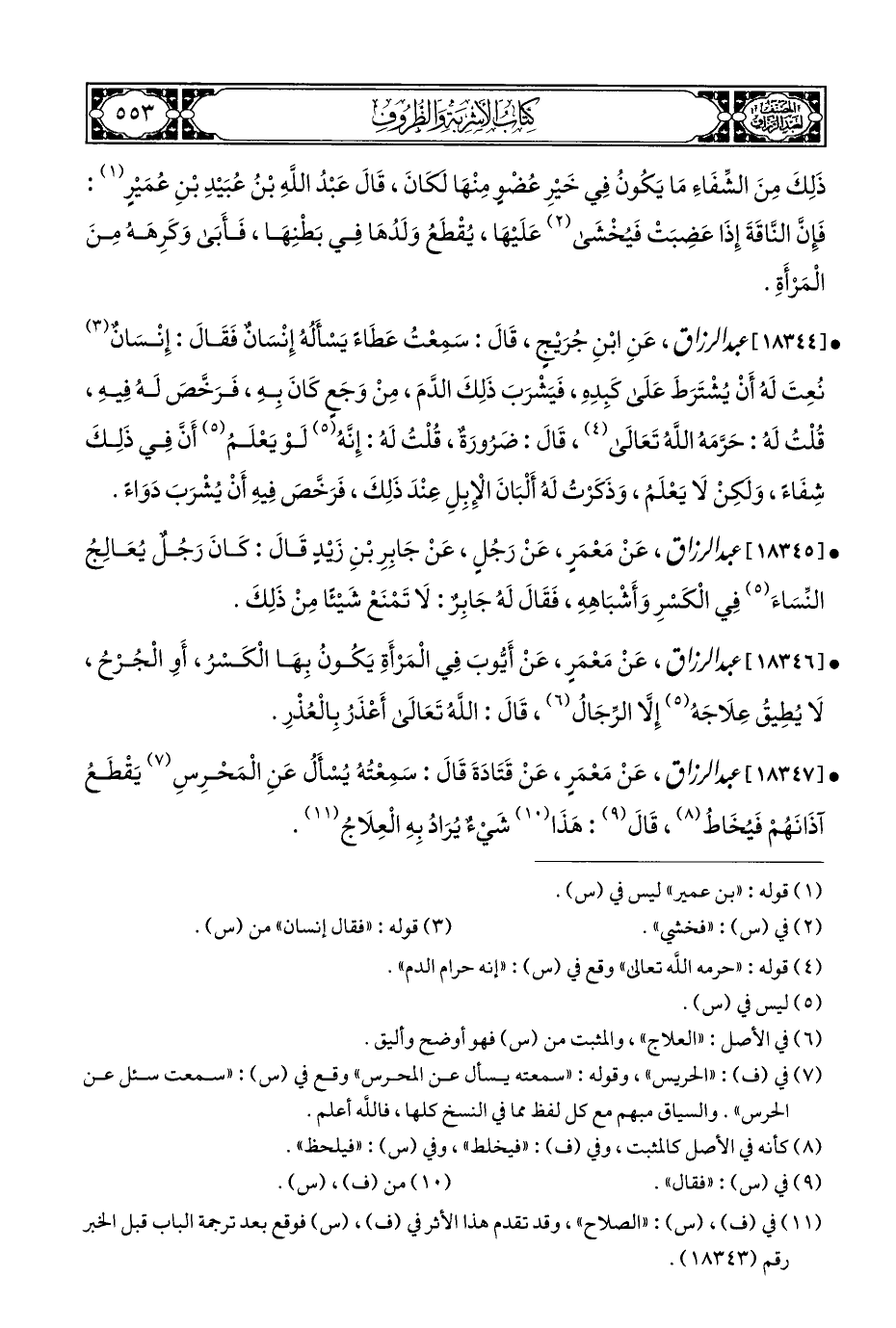 • [١٨٣٤٥] عَبْدُ الرَّزَّاقِ، عَنْ مَعْمَرٍ، عَنْ رَجُلٍ، عَنْ جَابِرِ بْنِ زَيْدٍ قَالَ: كَانَ رَجُلٌ يُعَالِجُ النِّسَاءَ (¬٥) فِي الْكَسْرِ وَأَشْبَاهِهِ، فَقَالَ لَهُ جَابِرٌ: لَا تَمْنَعْ شَيْئًا مِنْ ذَلِكَ.