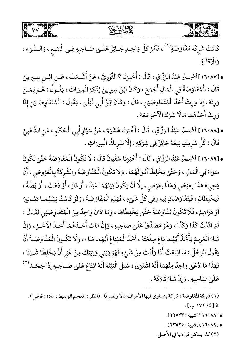 (¬١) شركة المفاوضة: شركة يتساوى فيها الأطراف مالًا وتصرفًا. (انظر: المعجم الوسيط، مادة: فوض).