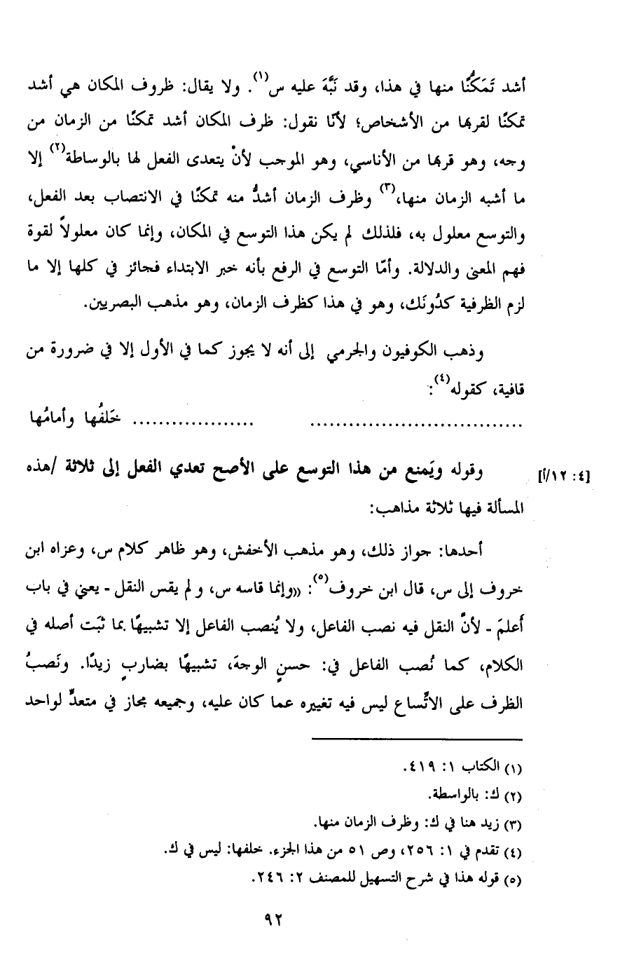 أحدها: جواز ذلك، وهو مذهب الأخف، وهو ظاهر كلام س، وعزاه ابن خروف إلى س، قال ابن خروف: «وإنما قاسه س، ولم يقس النقل- يعني في باب أعلم- لأن النقل فيه نصب الفاعل، ولا ينصب الفاعل إلا تشبيهاً بما ثبت أصله في الكلام، كما نصب الفاعل في: حسنٍ الوجه، تشبيهاً بضارب زيداً. ونصب الظرف على الأتساع ليس فيه تغييره عما كان عليه، وجميعه مجاز في متعد لواحد