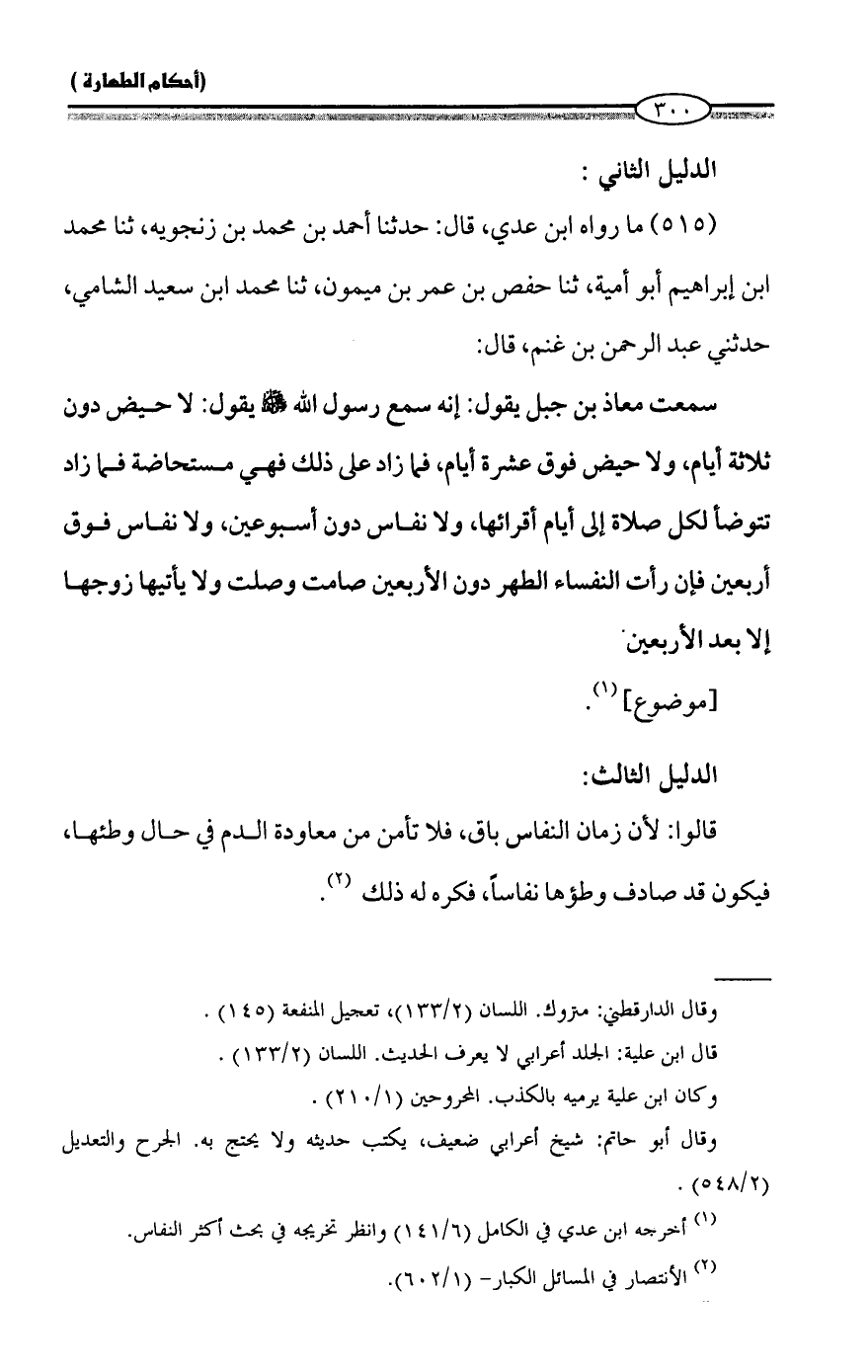 (¬١) أخرجه ابن عدي في الكامل (٦/ ١٤١) وانظر تخريجه في بحث أكثر النفاس.