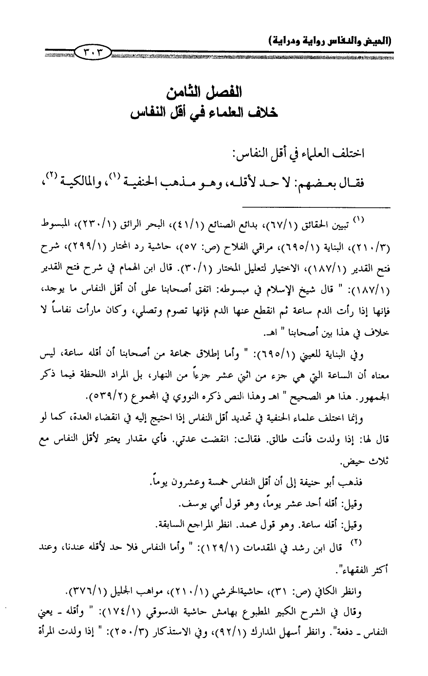 الفصل الثامن: خلاف العلماء في أقل النفاس