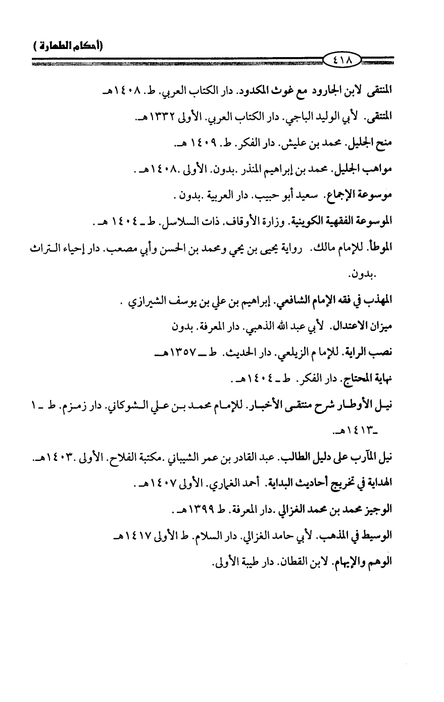 المنتقى. لأبي الوليد الباجي. دار الكتاب العربي. الأولى ١٣٣٢ هـ.