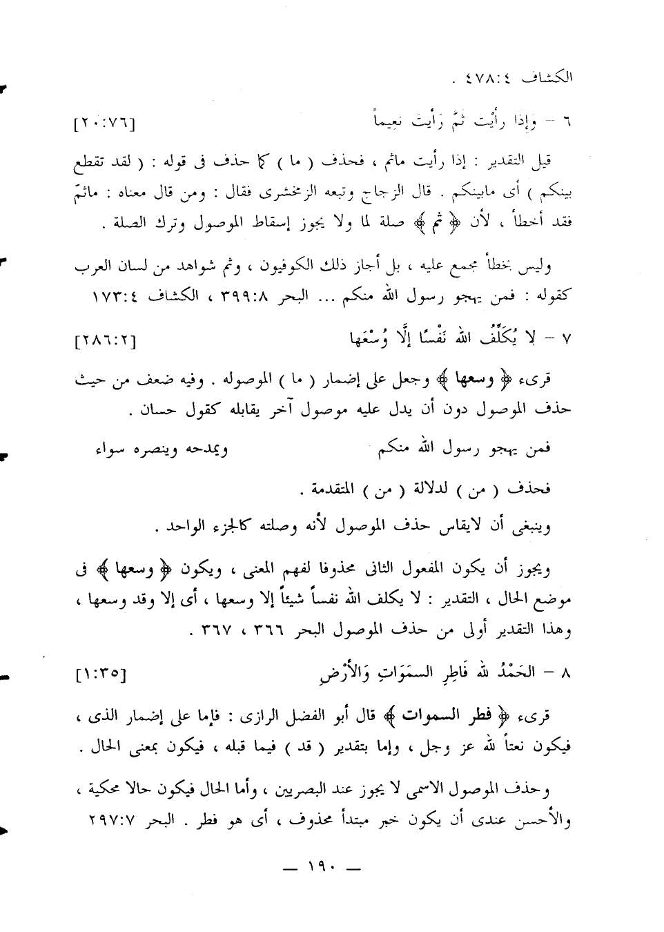 قيل التقدير: إذا رأيت ماثم، فحذف (ما) كما حذف في قوله: (لقد تقطع بينكم) أي ما بينكم. قال الزجاج وتبعه الزمخشري فقال: ومن قال معناه: ماثم فقد أخطأ، لأن {ثم} صلة لما ولا يجوز إسقاط الموصول وترك الصلة.