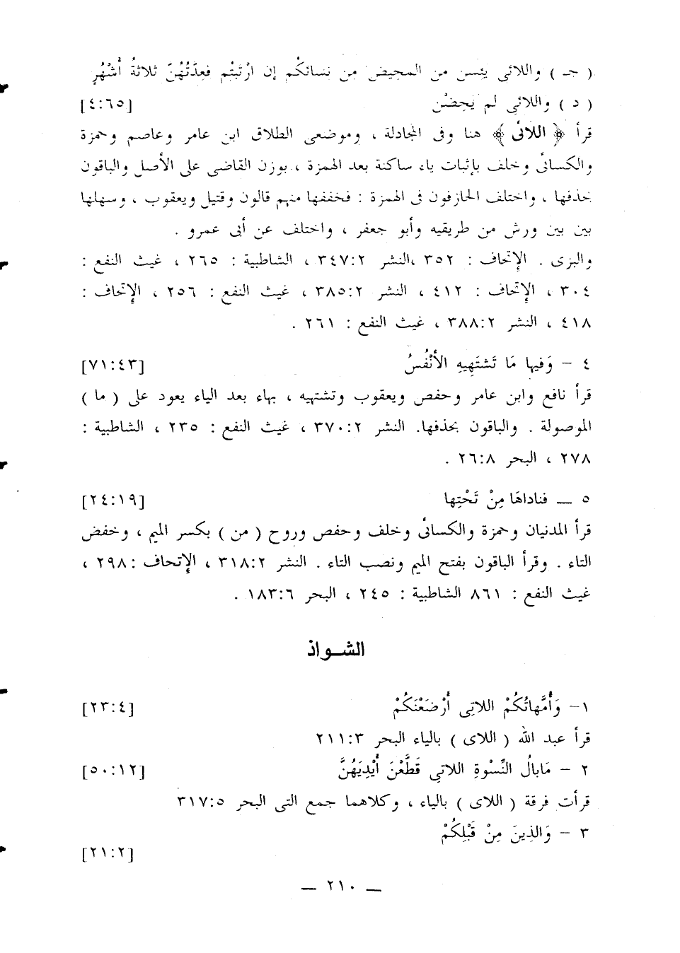 قرأ عبد الله (اللاى) بالياء الحر 3: 211.