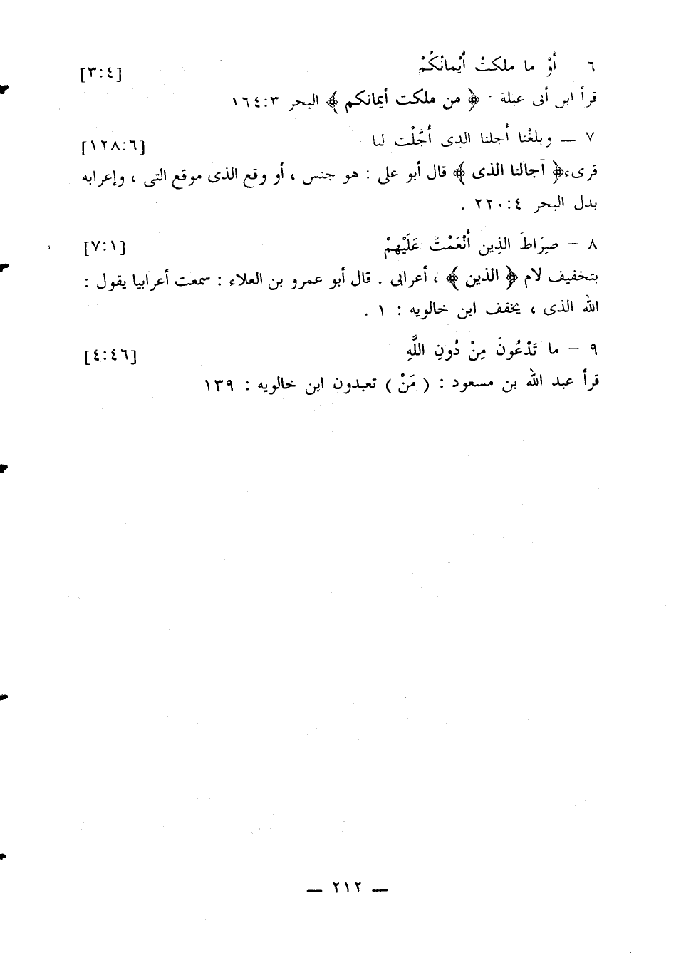 بتخفيف لام {الذين}، أعرابي. قال أبو عمرو بن العلاء: سمعت أعرابيًا يقول: الله الذي، يخفف ابن خالويه: 1.