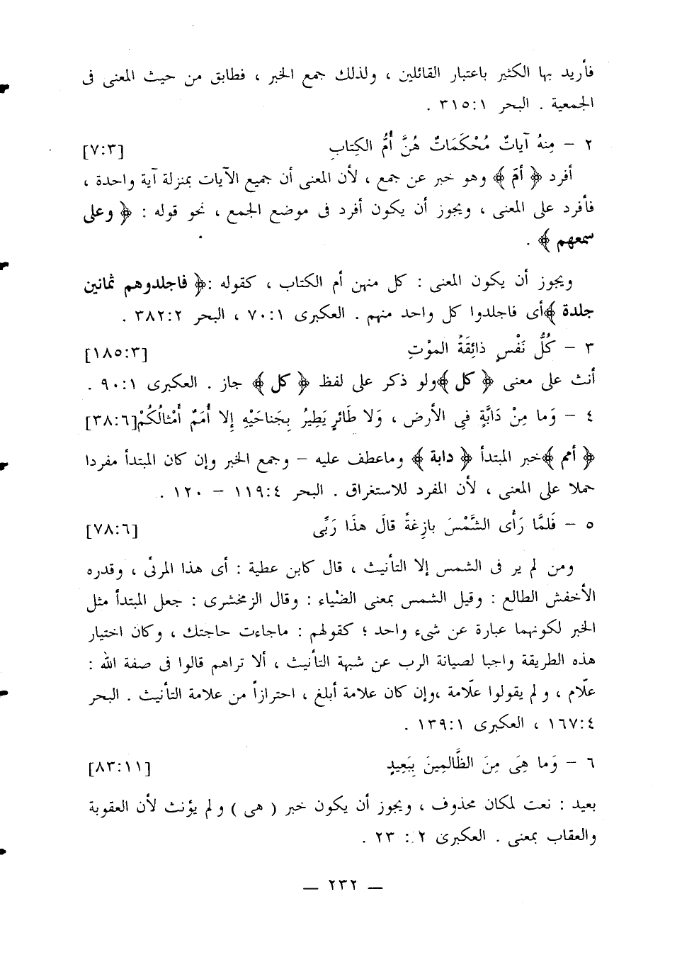 ويجوز أن يكون المعنى: كل منهن أم الكتاب، كقوله: {فاجلدوهم ثمانين جلدة} أي فاجلدوا كل واحد منهم. العكبري 1: 70، البحر 2: 283.