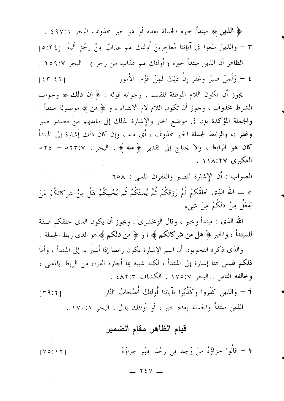 الصواب: أن الإشارة للصبر والغفران المغني: 658.