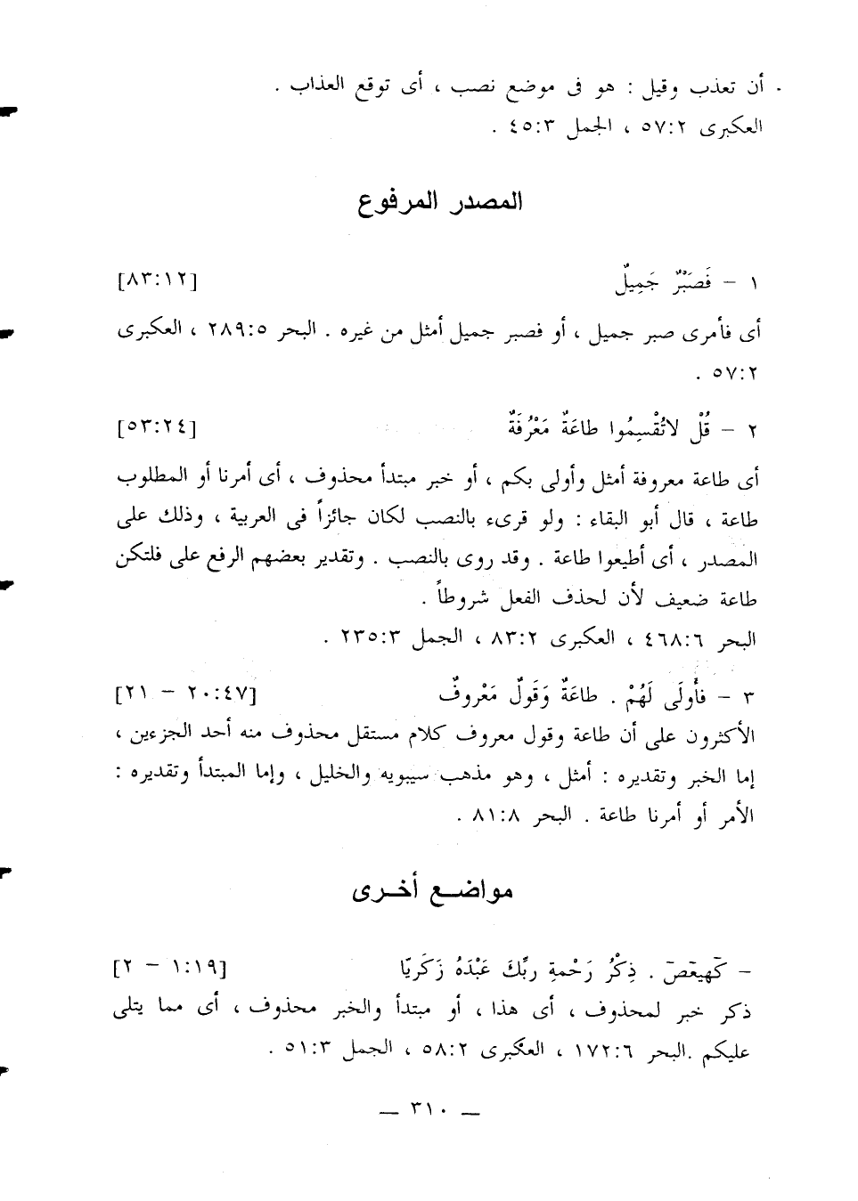 الأكثرون على أن طاعة وقول معروف كلام مستقل محذوف منه أحد الجزءين، إما الخبر وتقديره: أمثل، وهو مذهب سيبويه والخليل، وإما المبتدأ وتقديره: الأمر أو أمرنا طاعة. البحر 8: 81.