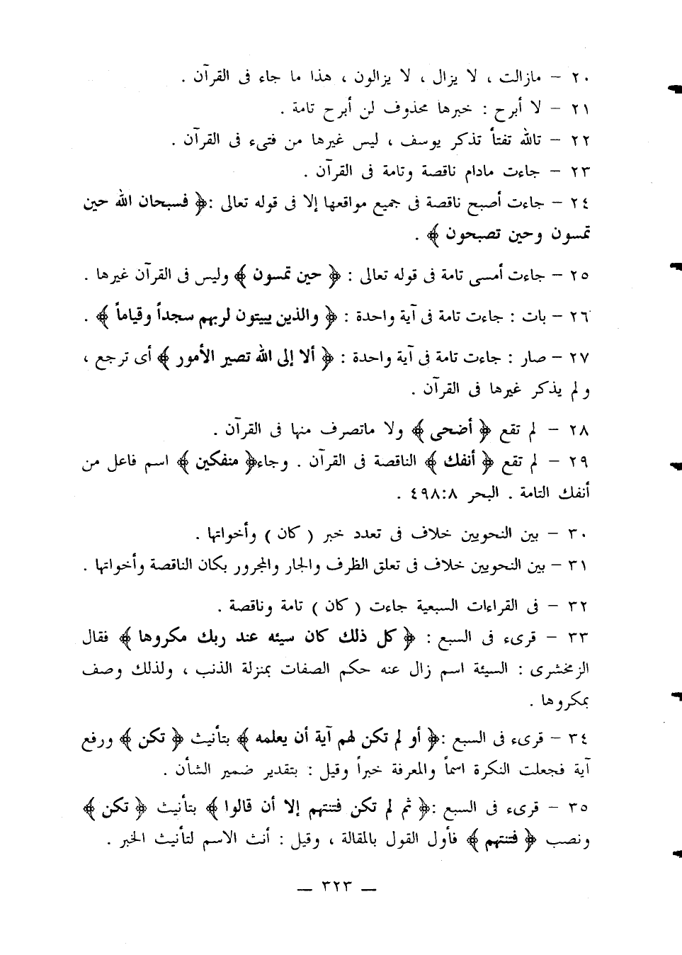 32 - في القراءات السبعية جاءت (كان) تامة وناقصة.