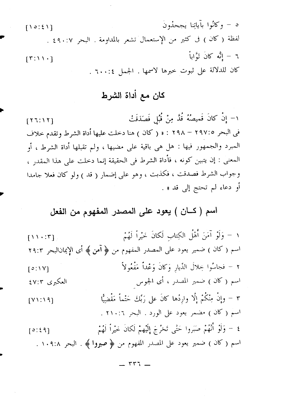 لفظة (كان) في كثير من الاستعمال تشعر بالمداومة. البحر 7: 490.
