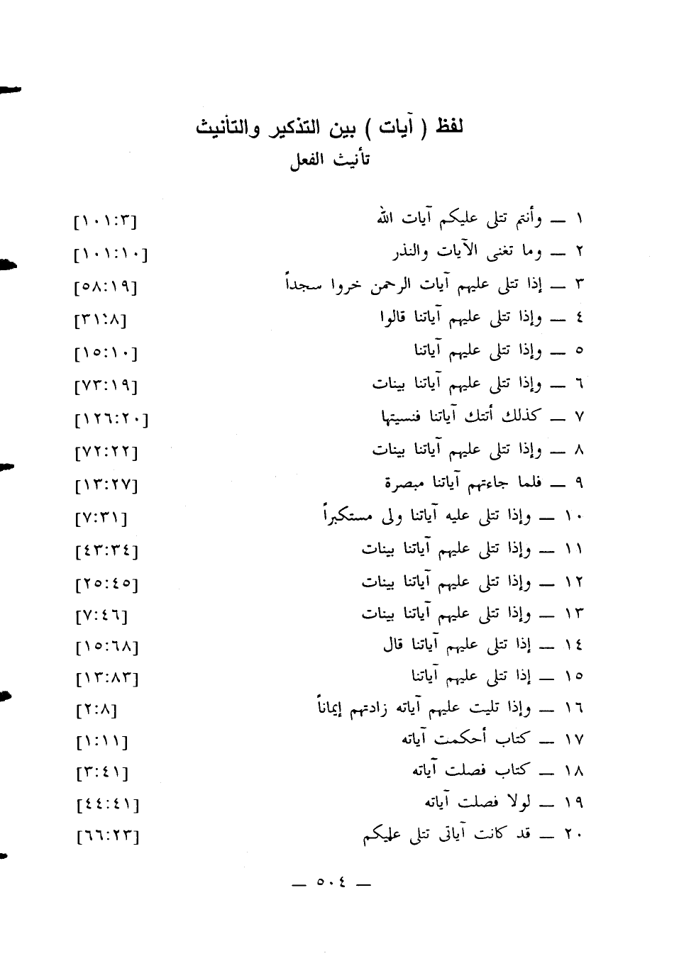 لفظ (آيات) بين التذكير والتأنيث تأنيث الفعل