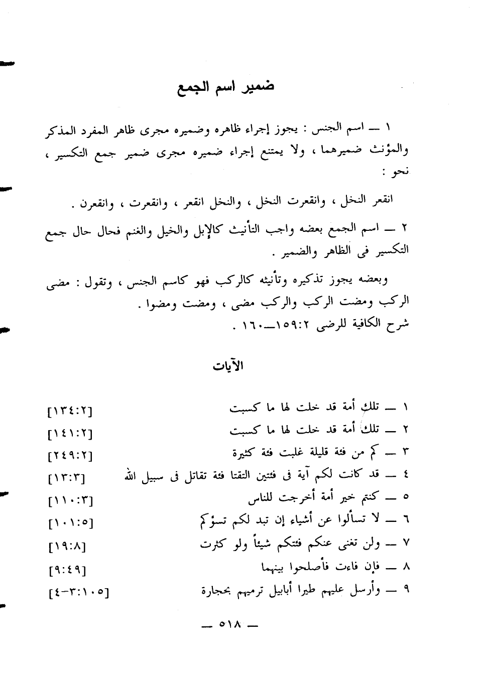 1 - اسم الجنس: يجوز إجراء ظاهره وضميره مجرى ظاهر المفرد المذكر والمؤنث ضميرهما، ولا يمتنع إجراء ضميره مجرى ضمير جمع التكسير، نحو: