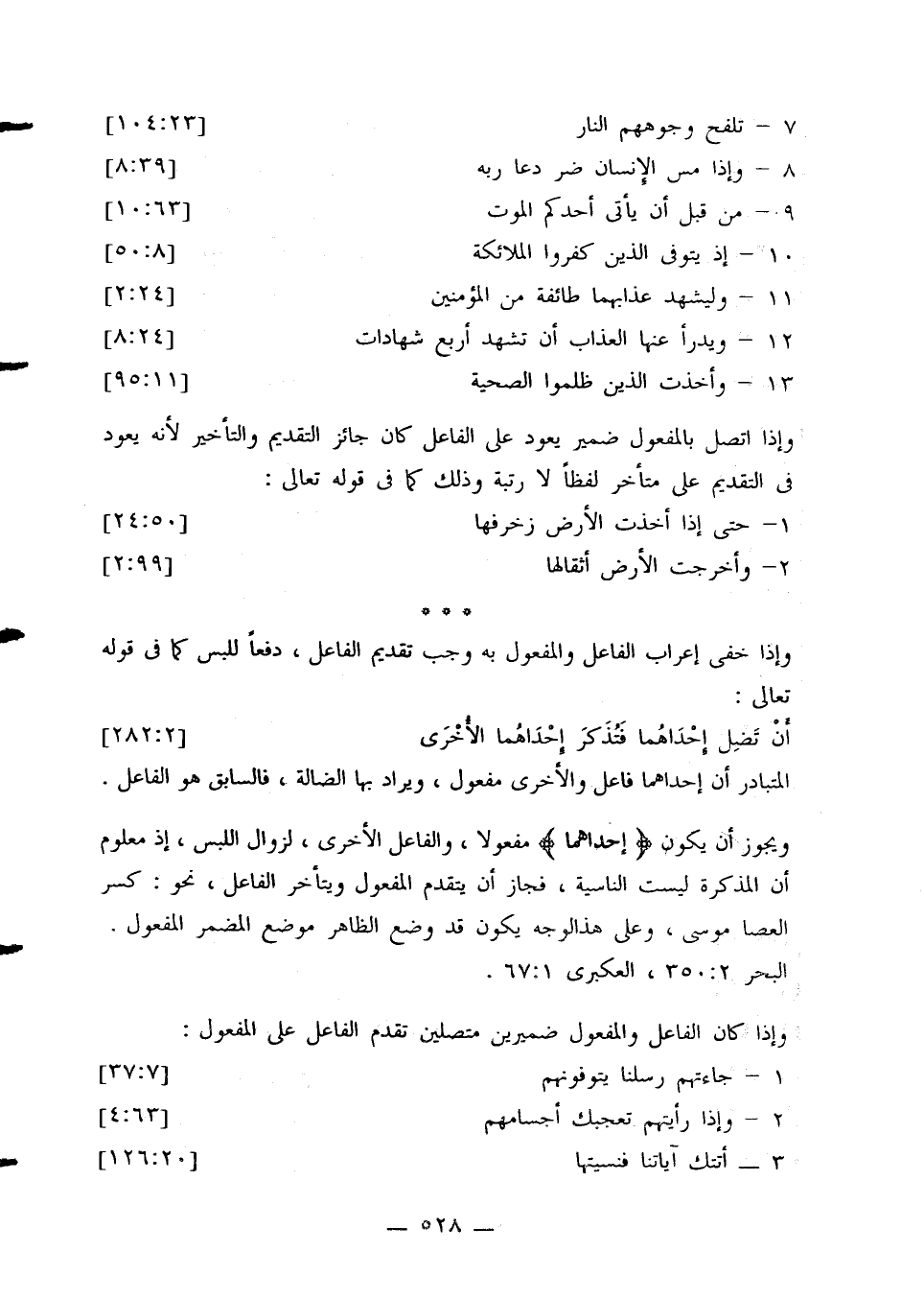 وإذا خفي إعراب الفاعل والمفعول به وجب تقديم الفاعل، دفعًا للبس كما في قوله تعالى: