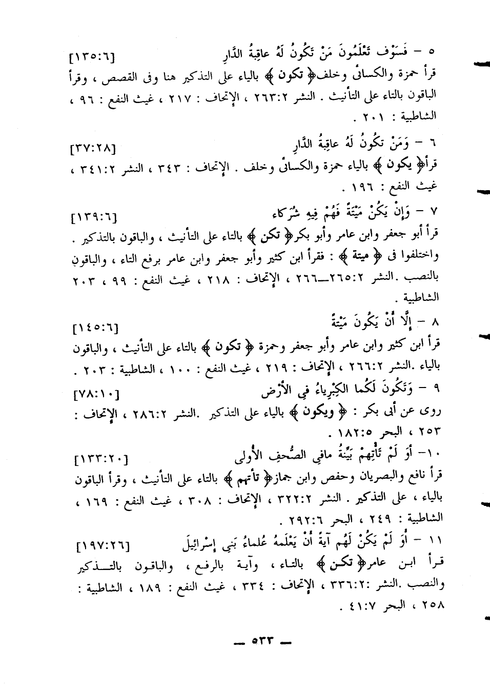 قرأ ابن كثير وابن عامر وأبو جعفر وحمزة {تكون} بالتاء على التأنيث، والباقون بالياء. النشر 2: 266، الإتحاف: 219، غيث النفع: 100، الشاطبية: 203.