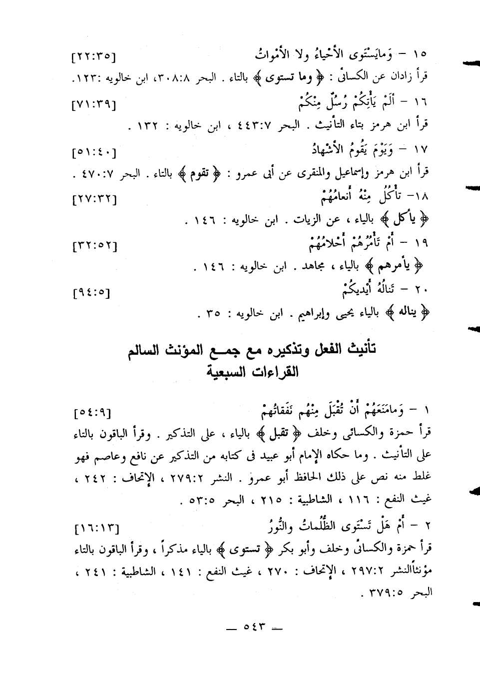 تأنيث الفعل وتذكيره مع جمع المؤنث السالم القراءات السبعية