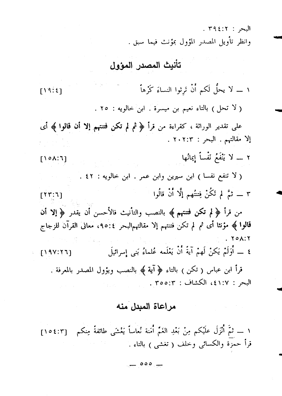 (لا تنفع نفسا) ابن سيرين وابن عمر. ابن خالويه: 42.