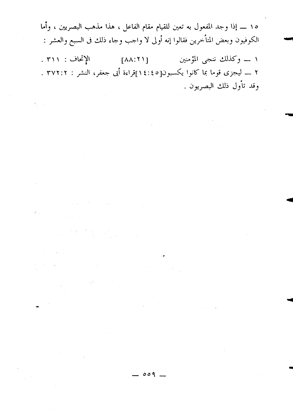 15 - إذا وجد المفعول به تعين للقيام مقام الفاعل، هذا مذهب البصريين، وأما الكوفيون وبعض المتأخرين فقالوا إنه أولى لا واجب وجاء ذلك في السبع والعشر: