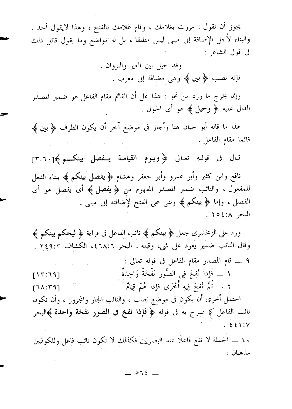 ورد على الزمخشري جعل {بينكم} نائب الفاعل في قراءة {ليحكم بينكم} وقال النائب ضمير يعود على شيء وقبله. البحر 6: 468، الكشاف 3: 249.