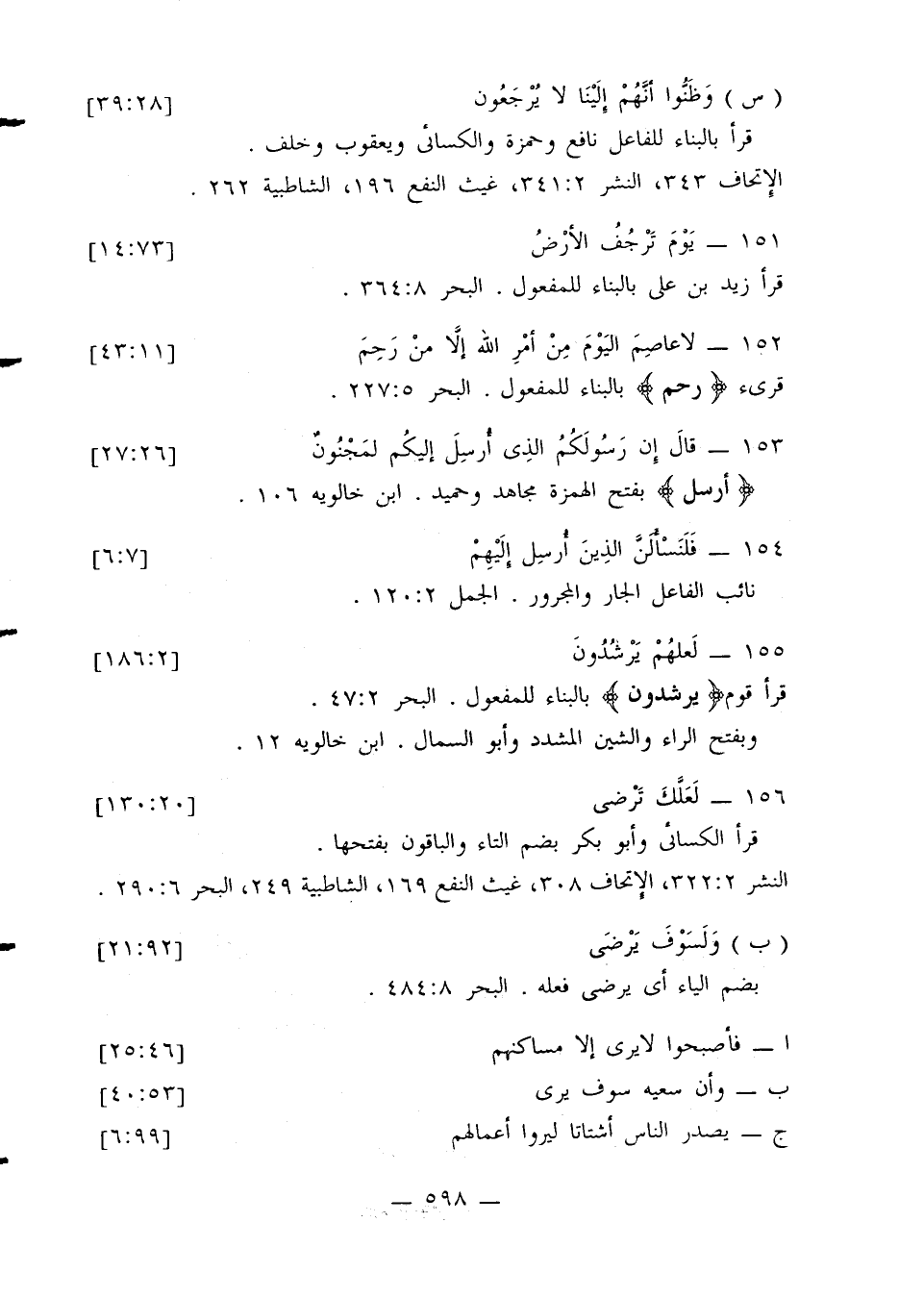 النشر 2: 322، الإتحاف 308، غيث النفع 169، الشاطبية 249، البحر 6: 290.