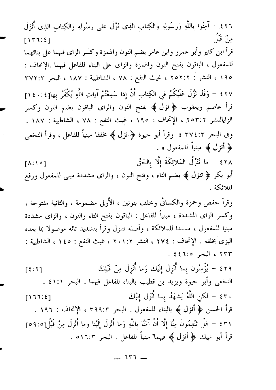 426 - آمنوا بالله ورسوله والكتاب الذي نزل على رسوله والكتاب الذي أنزل من قبل ... [4: 136]
