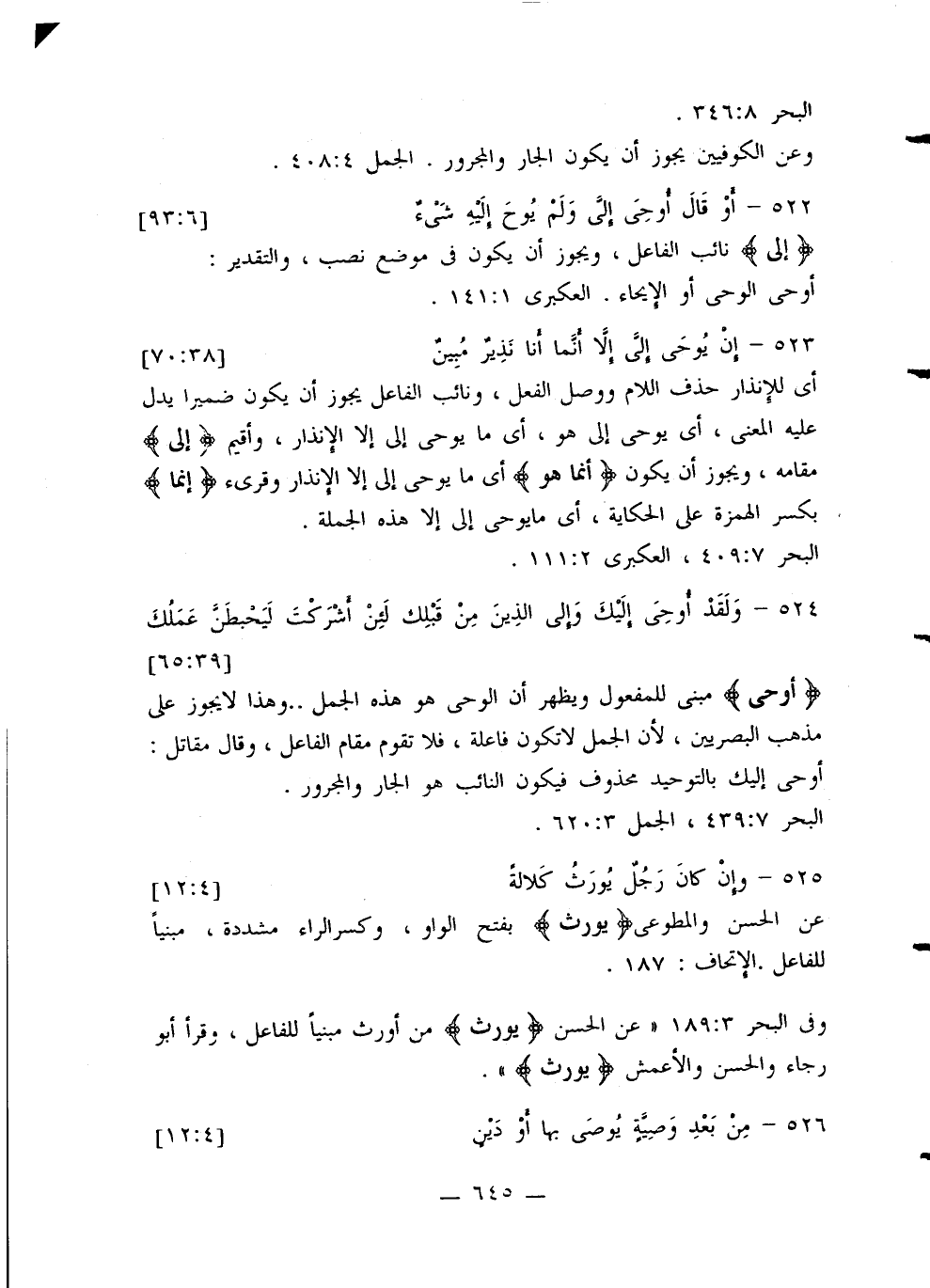 {إلى} نائب الفاعل، ويجوز أن يكون في موضع نصب، والتقدير: أوحى الوحي أو الإيحاء. العكبري 1: 141.